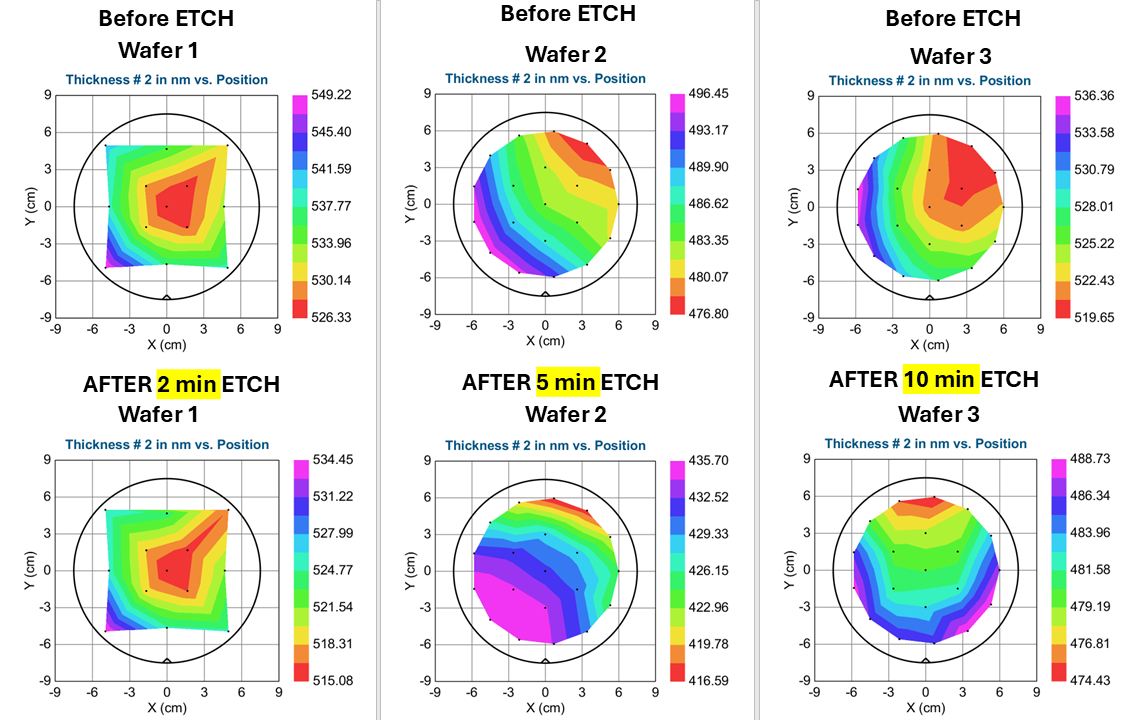 All the wafers have no mask/pattern, 100% load. The process was run after 10 mins chamber clean + 5 mins of TDESC clean